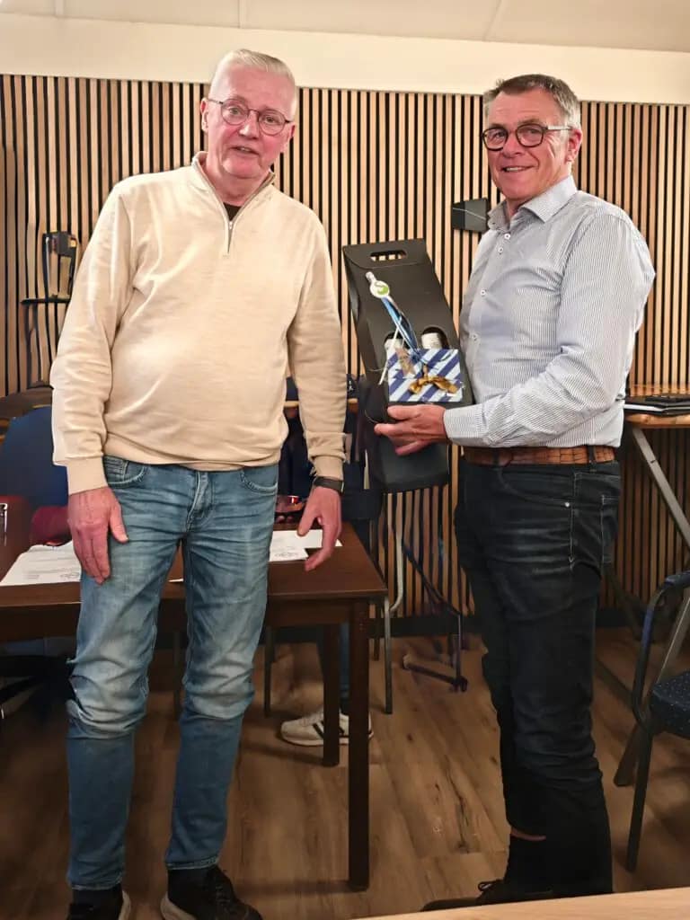 Ben Leferink (r) wordt bedankt voor zijn voorzitterschap